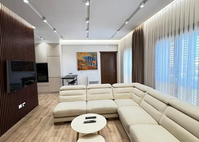 ベッドルーム1室のSam'S Apartments 1 - ティラナは、Statorja e Hafiz Ibrahim Dalliuから徒歩で5分で、ティラナ国際空港から20キロメートルの場所にあります。 広々とした120m²のアパートの特徴の一つは、山の眺めを楽しめるテラスです。